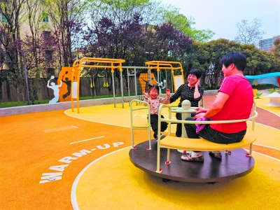 中国妇女报全媒体记者见到王奶奶时,她正在给孙子换隔汗巾。“小孩子玩‘疯’了,跑来跑去,浑身是汗。”说到这个家门口的公园,她赞不绝口,“离家近,还好玩,漂亮又舒适,蛮好蛮好。”