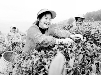 4月17日,在四川省达州市渠县临巴镇凉桥村秀岭春天茶园,茶农采摘富硒有机茶。    谷雨将至,各地抢抓农时开展农业生产,田间地头一派生机勃勃的忙碌景象。    新华社发