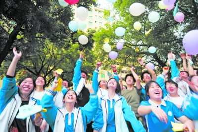 5月21日,湖南省郴州市嘉禾县第五中学高三学生在放飞气球。 近期,各地高中开展丰富多彩的活动,帮助高三学子以轻松的心态迎接即将来临的高考。新华社发(黄春涛/摄)