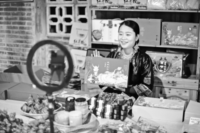 2023年4月24日,贾宥凌在工作室里直播带货。 “90后”苗族姑娘贾宥凌是广西柳州市融水苗族自治县香粉乡中坪村一名返乡创业青年。2019年,大学毕业在外工作四年后,贾宥凌回到家乡创业,成立了一家农业科技有限责任公司,打造“苗家凌子”绿色食品品牌,借助直播和短视频销售大苗山的农副产品、宣传家乡的民族文化和旅游资源。 2023年,在广东省廉江市粤桂协作资金的支持下,贾宥凌成立了粤桂协作农产品展销中心和大学生返乡创业孵化室,为当地农产品的展销和大学生就业创业提供平台。新华社记者 黄孝邦/摄