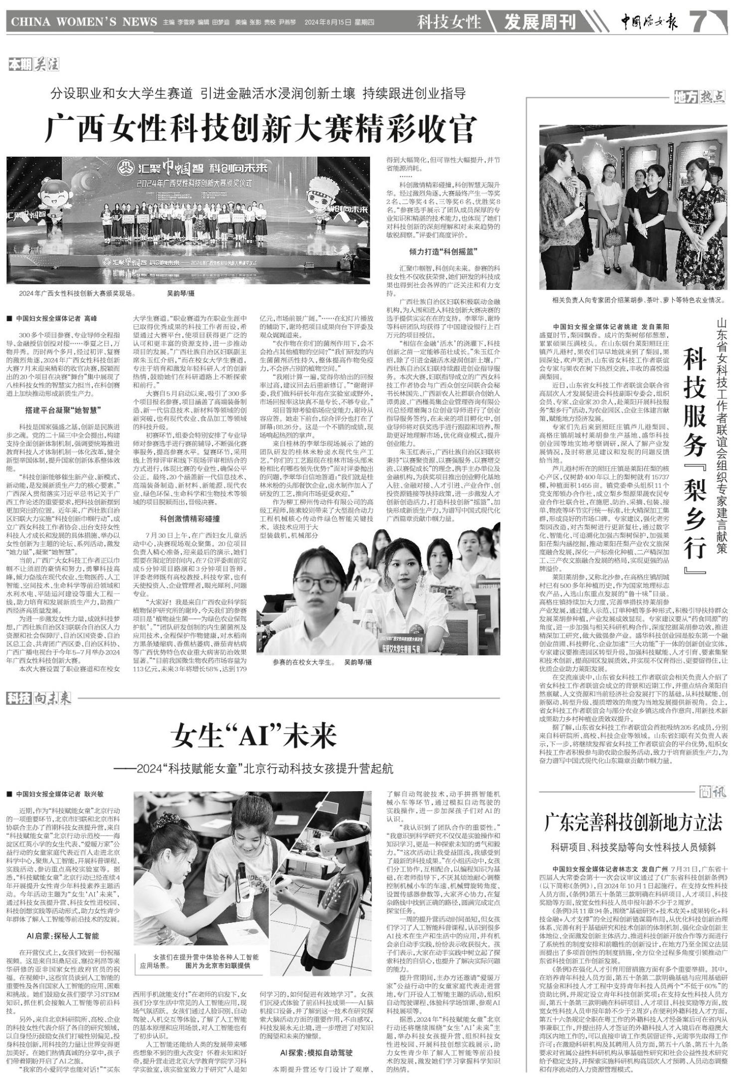 据悉,2024年“科技赋能女童”北京行动还将继续围绕“女生‘AI’未来”主题,举办科技女孩提升营、组织科技女性进校园、开展科技创想实践展示,助力女性青少年了解人工智能等前沿技术的发展,激发她们学习掌握科学知识的热情。