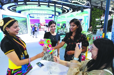 一路旖旎风光,一路绿色同行。本届服贸会主题论坛刮起一阵“最炫绿色风”,废弃塑料餐盒变废为宝、高价值再生制品琳琅满目、“以竹代塑”助力零碳绿色生活……环保低碳气息扑面而来。