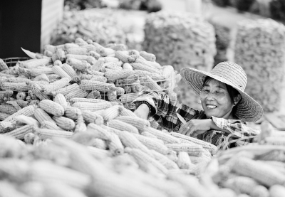 9月18日,山东省临沂市郯城县郯城街道农民在整理收获的玉米。金秋时节,瓜果飘香、田野金黄,农民抢抓晴好天气,收获劳动果实。新华社发(张春雷/摄)