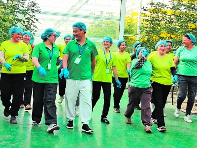 45岁的维吾尔族妇女鲜西奴·阿尤普江以前在新疆伊犁哈萨克自治州霍城县的一家超市做售货员,每月工资2700元。因家里有三个孩子在上学,经济压力大。今年,她应聘来到润泰农业,经培训成为番茄园区的一名工人。平时给番茄绕蔓、打叉、包装等工作,每天有150元工资,到番茄采收期,还有每公斤5毛钱的计件工资,日收入可达200~300元。“比原来在超市的工资翻了一倍还要多!我喜欢这种多劳多得的机制,我觉得人只要努力,就可以改变一切。”她满脸幸福,“现在的收入可以供孩子们上学,很满足。”