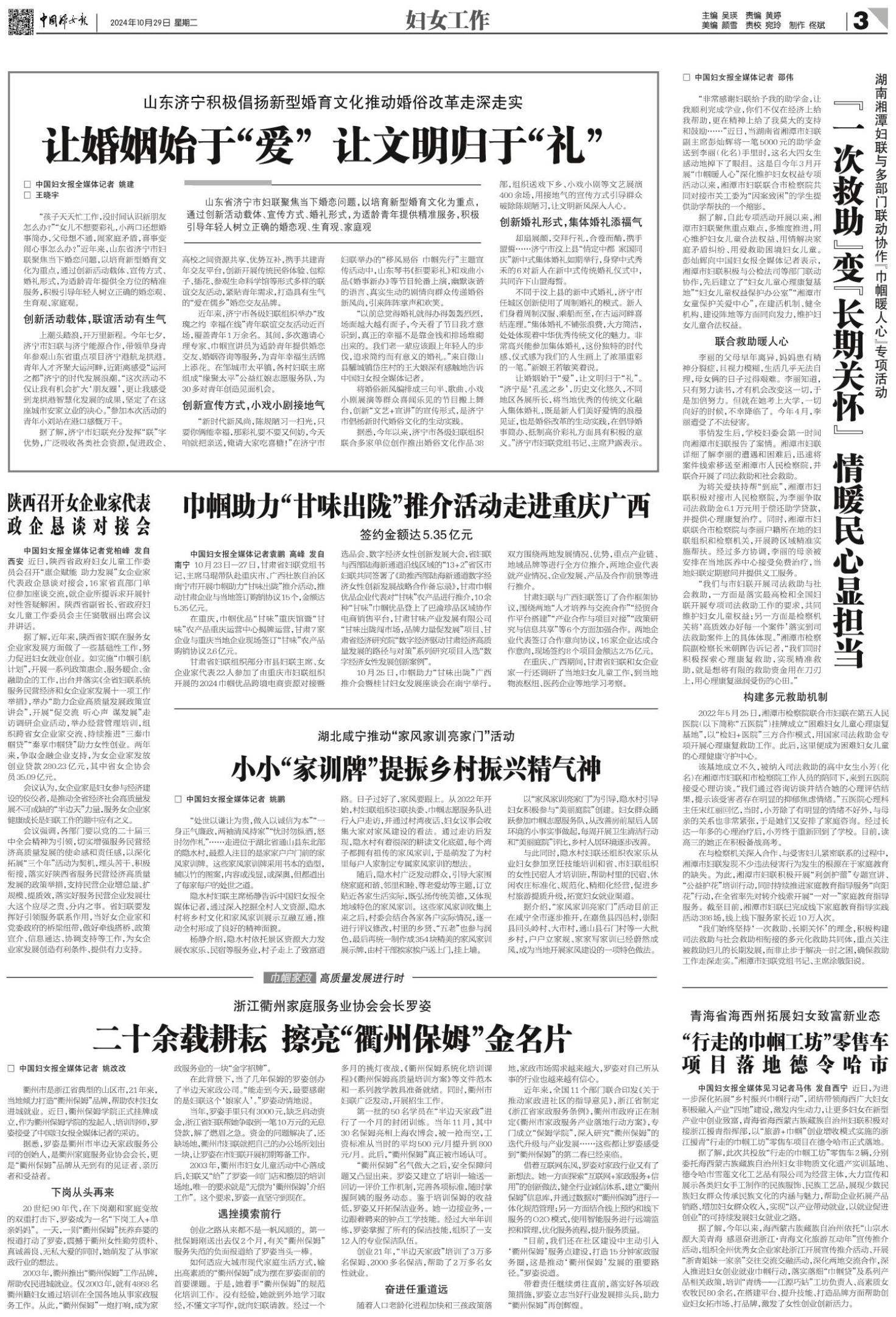 □ 中国妇女报全媒体记者 姚鹏