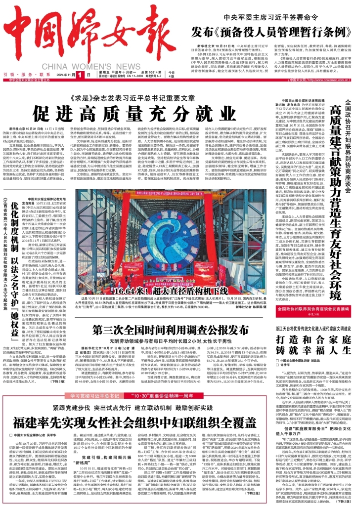 江西省人大法制委副主任委员、常委会法工委主任陈建平在回答中国妇女报全媒体记者相关提问时表示,《实施办法》立足该省实际,从明确党对妇女权益保障工作的领导,到规定建立政府主导、各方协同、社会参与的保障妇女权益工作机制;从明确建立健全男女平等评估工作机制,到细化各级人民政府、相关部门、群团组织保障妇女权益的职能职责,健全优化了妇女权益保障和全面发展的制度机制。