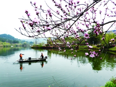 3月21日,在四川省达州高新区梨树坪湿地公园,志愿者清理湖面漂浮的杂物。 3月22日世界水日前夕,各地举行丰富多样的主题活动,增强人们的节水护水意识。