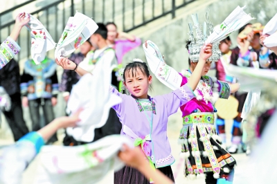 3月25日,柳州市融水苗族自治县杆洞乡中心小学学生在跳芦笙踩堂舞。 当日,广西柳州市融水苗族自治县杆洞乡中心小学举行石榴籽连籽·共庆“三月三”乡村少年宫民族风情文化展演活动,各族少年通过芦笙踩堂舞、山歌对唱、刺绣等丰富多彩的民俗文化活动,喜迎“三月三”传统节日。 新华社记者 黄孝邦/摄