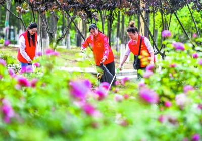 2025年4月22日,湖南省永州市道县绍基公园,志愿者在捡拾垃圾。当日是世界地球日,道县志愿者开展清捡垃圾志愿活动,用实际行动保护环境,共同守护家园。图源:视觉中国