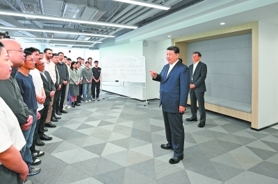 “模速空间”是上海市打造的人工智能大模型专业孵化和加速平台,已入驻企业100余家。习近平来到这里,通过视频短片了解上海市人工智能产业发展情况,察看重点孵化企业的大模型产品展示,听取相关技术研发和企业生产经营介绍。习近平对上海积极发展人工智能取得的实效给予肯定。他指出,人工智能技术加速迭代,正迎来爆发式发展,上海要总结好以大模型产业生态体系孵化人工智能产业等成功经验,加大探索力度,力争在人工智能发展和治理各方面走在前列,产生示范效应。