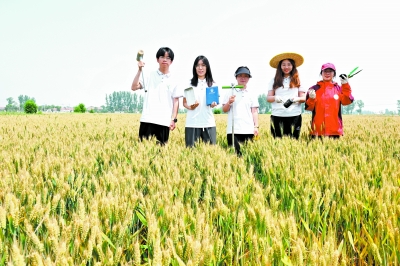 河北省曲周县傅庄科技小院的学生在麦田里(5月26日摄)。时下,华北平原麦浪滚滚,一派丰收在即的景象。在河北省曲周县,中国农业大学科技小院的学生往来田间,看小麦长势,进行各种试验,为小麦丰产保驾护航。 新华社记者 牟宇/摄