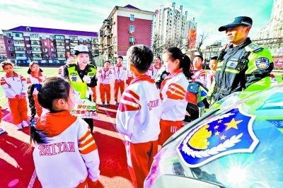 在“全国交通安全日”来临之际,各地开展交通安全进校园活动,为同学们普及交通安全知识,培养交通安全意识。新华社发(杜鹏辉/摄)