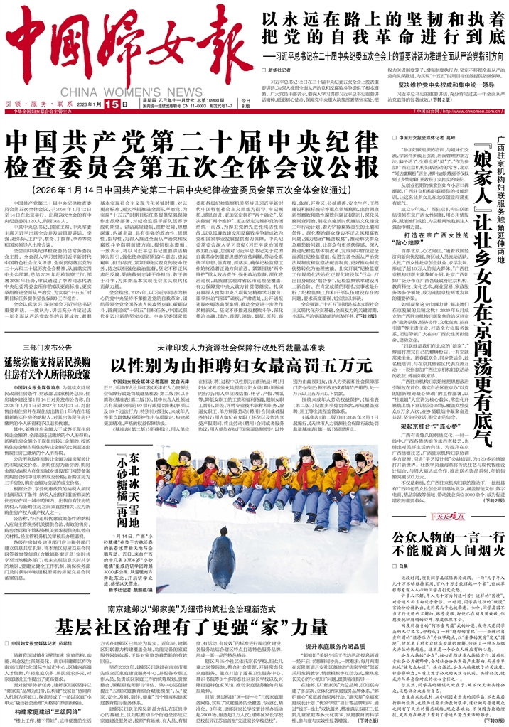 在京务工的覃女士试用期间因请病假接到公司辞退通知,顿感无措。广西驻京机构妇联接到求助后迅速响应,为她对接专业律师,提供全程法律援助。经调解,双方最终达成和解。拿到公司赔偿、维护了自己权益的覃女士表示:“妇联就是我们坚实的后盾,有了依靠我有信心再谋一份称心的新工作。”