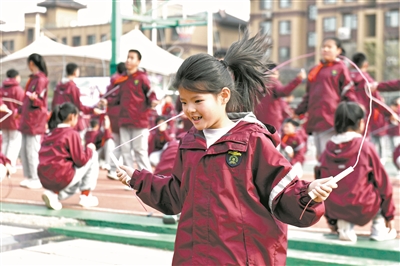 为增强学生体质,山东省日照市莒县第一实验小学在保留原有上午大课间的基础上,增设了下午30分钟阳光大课间,让孩子们“身上有汗、眼里有光”,健康成长。 新华社记者 郭绪雷/摄
