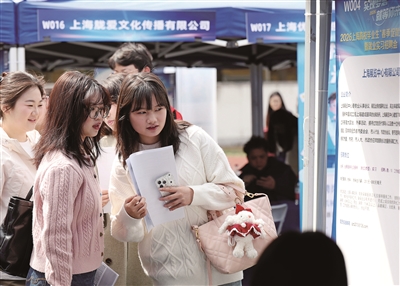 3月31日,2026上海高校毕业生“春季促就业攻坚行动”暨就业实习招聘会在上海师范大学徐汇校区举行。本次招聘会吸引800余家用人单位参加,涵盖集成电路、生物医药、人工智能、金融服务、教育行业、信息技术等领域。新华社记者 刘颖/摄