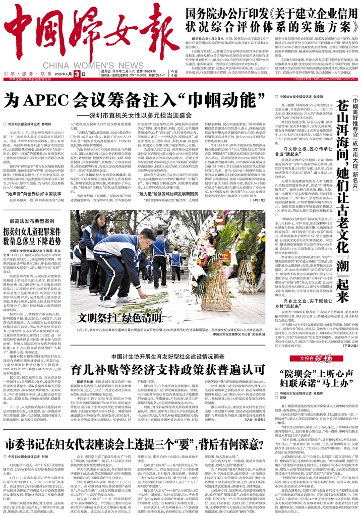 《中国妇女报》(电子版)的一切内容(包括但不限于文字、图片、PDF、图表、标志、标识、商标、版面设计、专栏目录与名称、内容分类标准以及为读者提供的任何信息)仅供中国妇女报读者阅读、学习研究使用,未经中国妇女报及/或相关权利人书面授权,任何单位及个人不得将《中国妇女报》(电子版)所登载、发布的内容用于商业性目的,包括但不限于转载、复制、发行、制作光盘、数据库、触摸展示等行为方式,或将之在非本站所属的服务器上作镜像。否则,中国妇女报将采取包括但不限于网上公示、向有关部门举报、诉讼等一切合法手段,追究侵权者的法律责任。