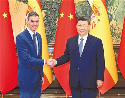 习近平强调,当今世界乱象丛生,面临公理和强权的较量。如何对待国际法和国际秩序,反映的是一国的世界观、秩序观、价值观和责任观。中国和西班牙都是有原则、讲道义的国家,应该加强沟通、巩固互信、紧密合作,反对世界倒退回丛林法则,共同捍卫真正的多边主义,维护以联合国为核心的国际体系和以国际法为基础的国际秩序,推动实现平等有序的世界多极化、普惠包容的经济全球化,推动构建人类命运共同体。桑切斯表示,我4年来4次访华,表明双方对西中关系的高度重视。中国企业在西投资合作有力促进了西经济发展。西班牙坚定恪守一个中国原则,高度重视中国的大国地位,坚定致力于发展具有战略定力的西中伙伴关系,希望加强贸易、投资、新能源等领域合作,促进人文交流。面对复杂严峻的国际形势和频发多发的冲突争端,只有坚持多边主义、推动构建多极世界才能为人类带来持久和平。西班牙积极支持习近平主席提出的四大全球倡议,愿同中方密切沟通协作,共同应对国际地缘政治、贸易保护主义、气候变化等方面挑战,维护国际法和多边主义。西班牙反对“新冷战”,反对“脱钩断链”,支持欧洲和中国增进沟通理解、加强合作。欧中关系健康发展符合双方共同利益,也有利于世界和平稳定。