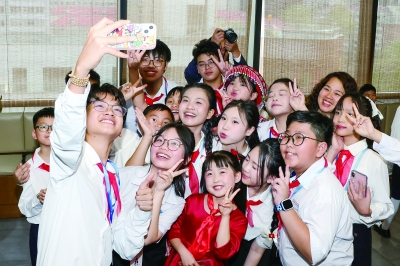 4月14日,在中国宋庆龄青少年科技文化交流中心,越南青年“红色研学之旅”之“不忘初心”研学营少先队分团成员和中国宋庆龄青少年科技文化交流中心学员合影留念。 近日,越南青年来华“红色研学之旅”之“不忘初心”研学营在北京、广州举办。200名越南各界青少年代表来华研学。据悉,2025年5月至2026年3月,该研学项目已在全国10个省(区、市)举办8期主题研学营,累计1000余名越南青少年参加。 新华社记者 郝昭/摄