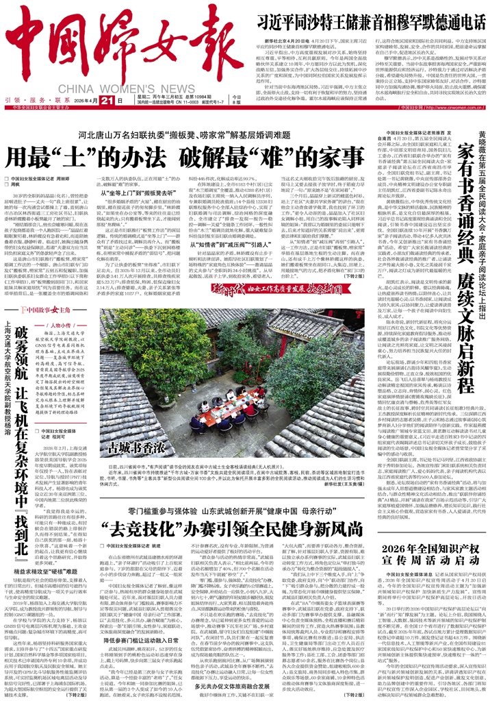中国妇女报全媒体记者熊维西 发自南昌 4月20日,第五届全民阅读大会开幕之际,由全国妇联家庭和儿童工作部、中宣部文明培育局、国务院妇儿工委办、江西省妇联联合举办的“家有书香诵经典”第五届全民阅读大会·家庭亲子阅读论坛在江西省南昌市举办。全国妇联党组书记、副主席、书记处第一书记黄晓薇,中央宣传部部务会成员、中央精神文明建设办公室专职副主任胡凯红,江西省委副书记陈永奇出席论坛并致辞。