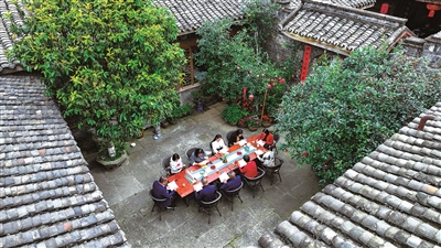 日前,四川省阆中市,“有声阅读”读书会的阅友在阆中古城土生金客栈诵读经典(无人机照片)。
